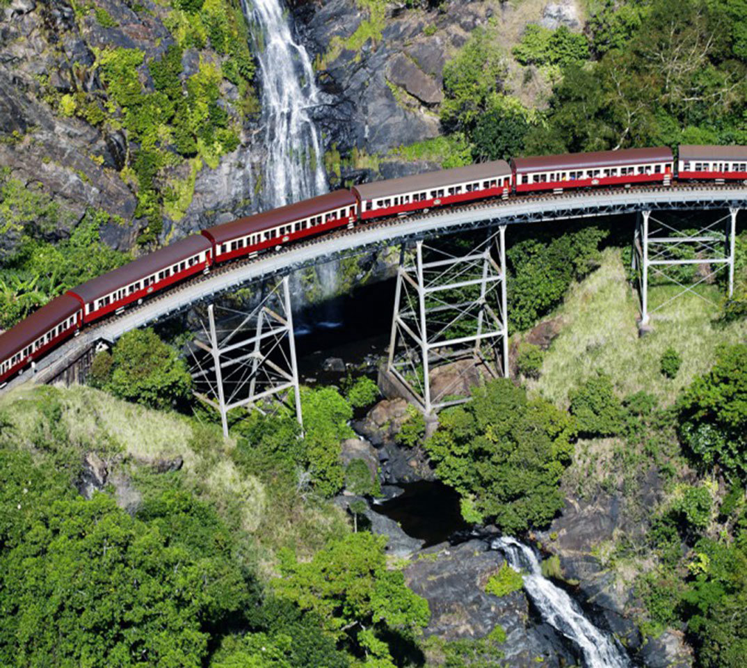 Start your day with a transfer from Port Douglas to Freshwater Station and the Kuranda Scenic Rail journey. Enjoy spectacular views of mountain ranges, tropical rainforest, Barron Gorge, and waterfalls. Arrive in Kuranda and explore its vibrant arts and crafts at leisure. Return via Skyrail Rainforest Cableway, gliding over the World Heritage-listed rainforest. Explore Red Peak and Barron Falls Station, including the Rainforest Discovery Zone and The Edge Lookout. Arrive at Smithfield Station and board your coach back to your accommodation.
